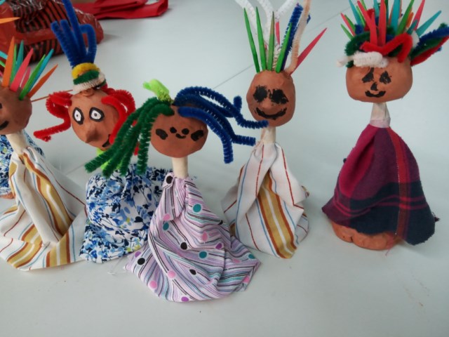 Nosaltres també en fem. fang escuradents, netejapipes. pintura. Ara només ens falten les teles dels vestits.